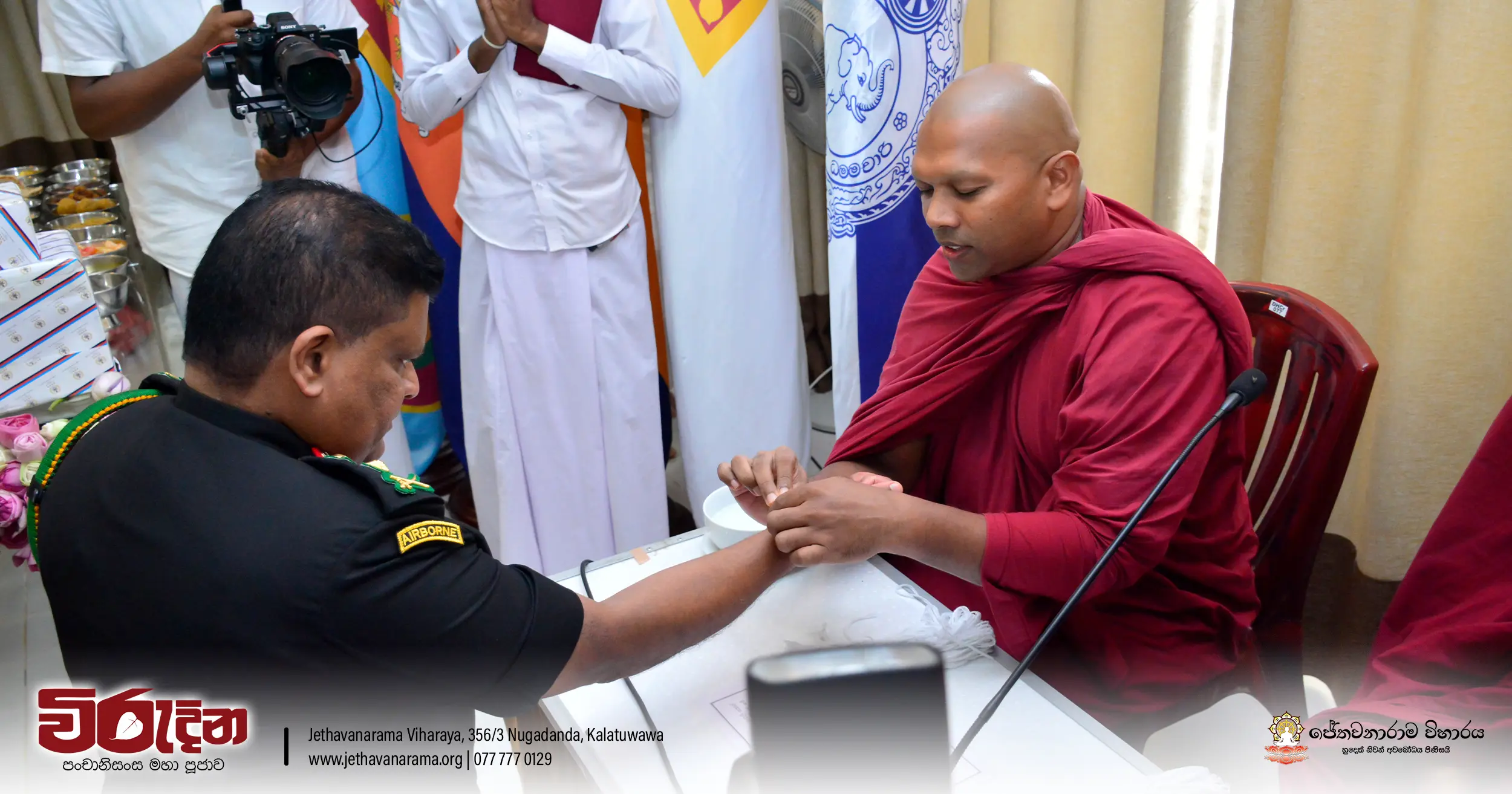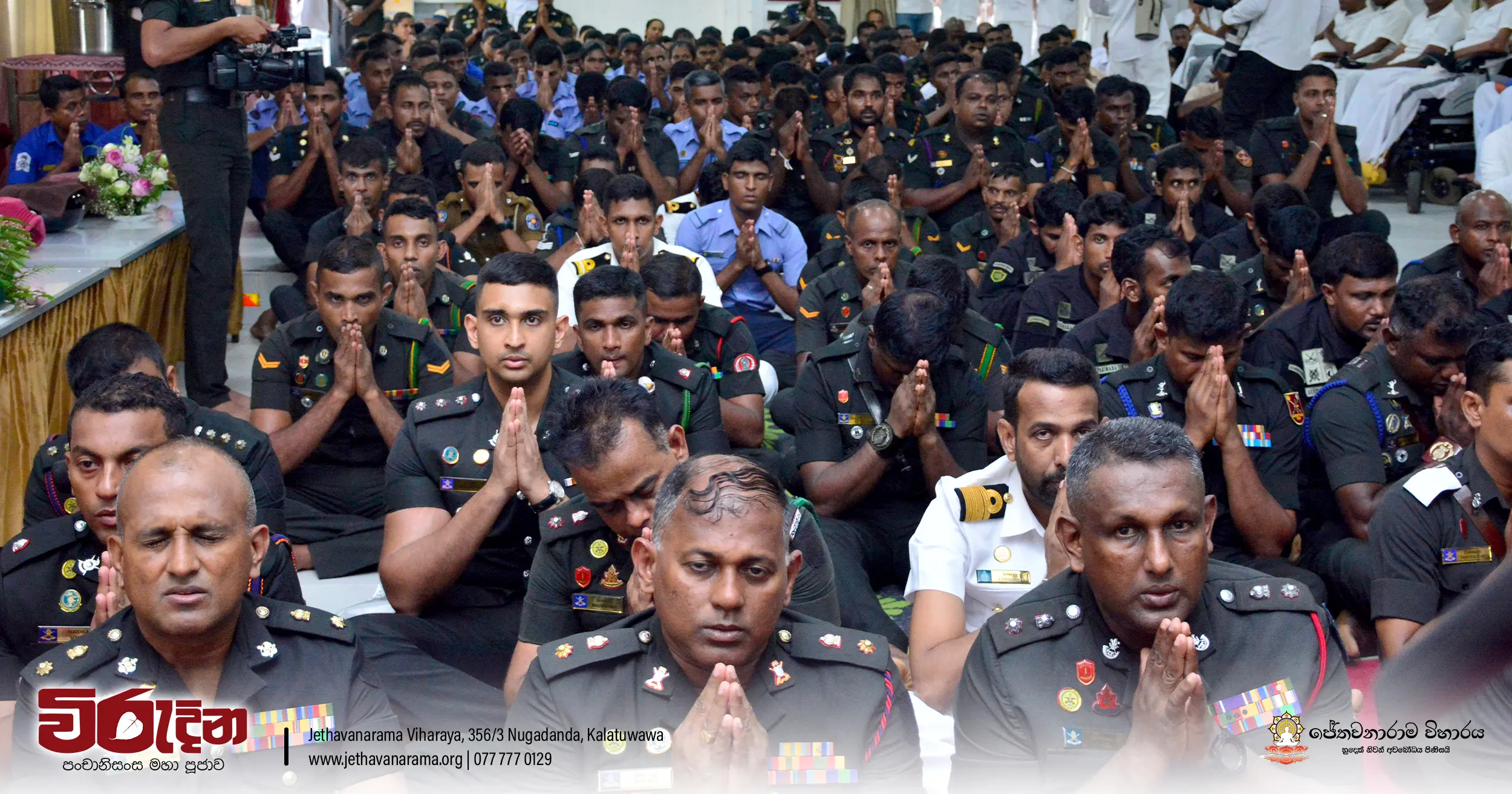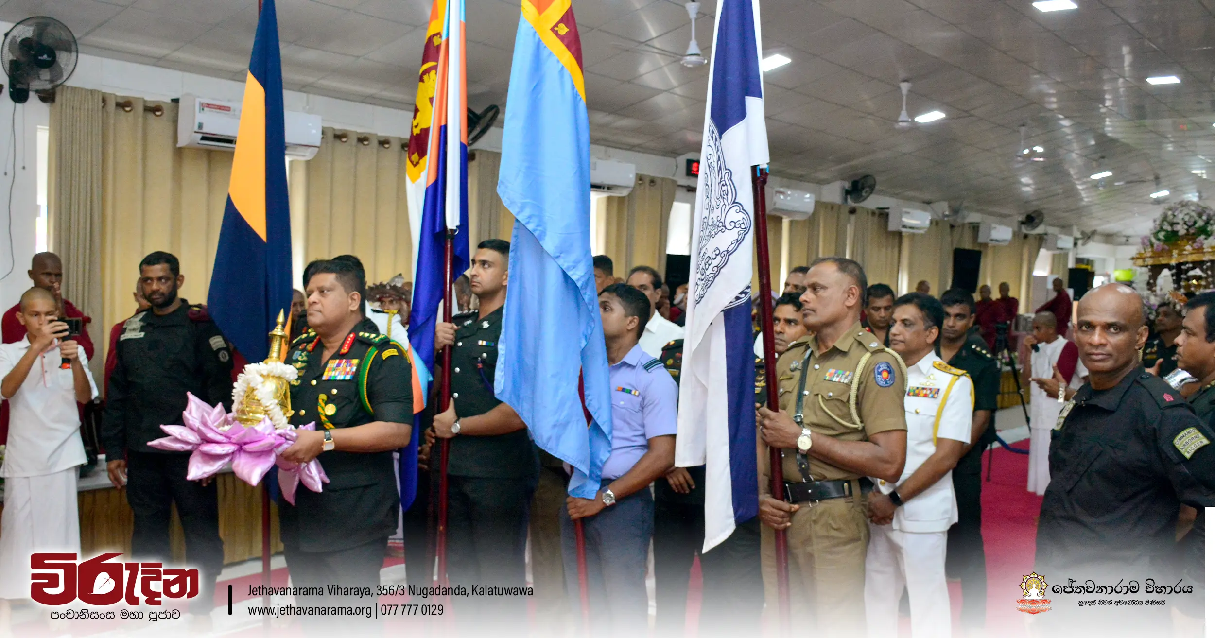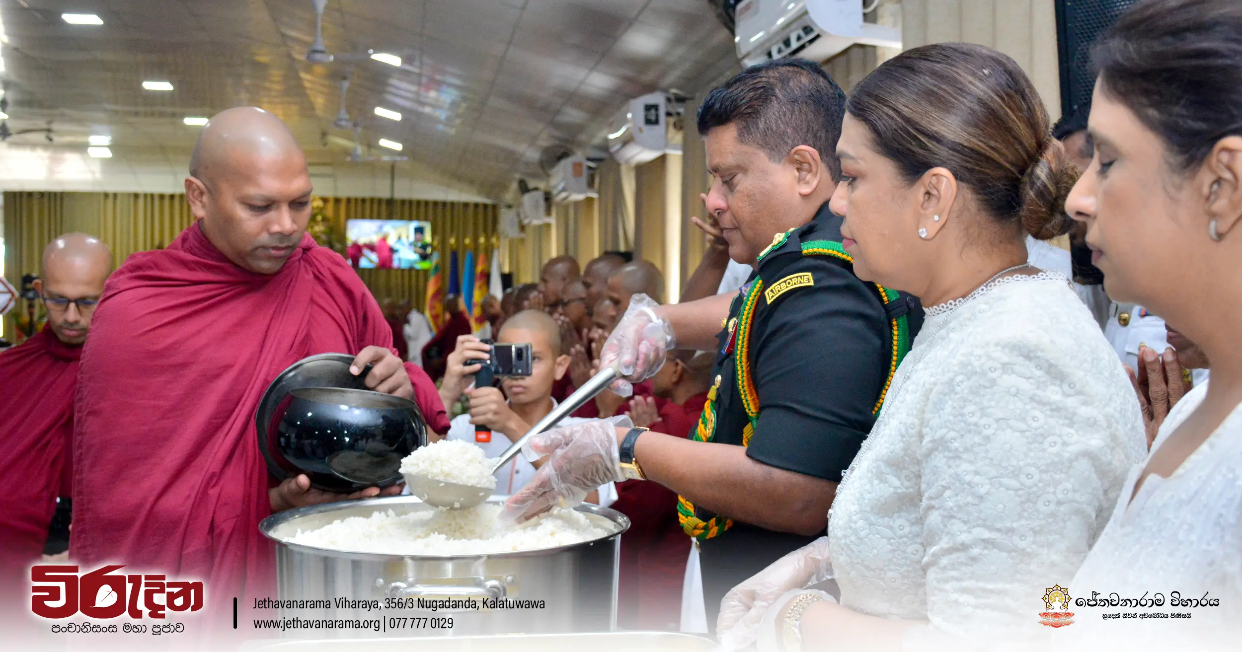 On the occasion of the 15th Victory Day, members of the Tri-forces and police personnel offered arms to 135 revered monks.They honored the memory of those who lost their lives during the war conflict and transferred merits.