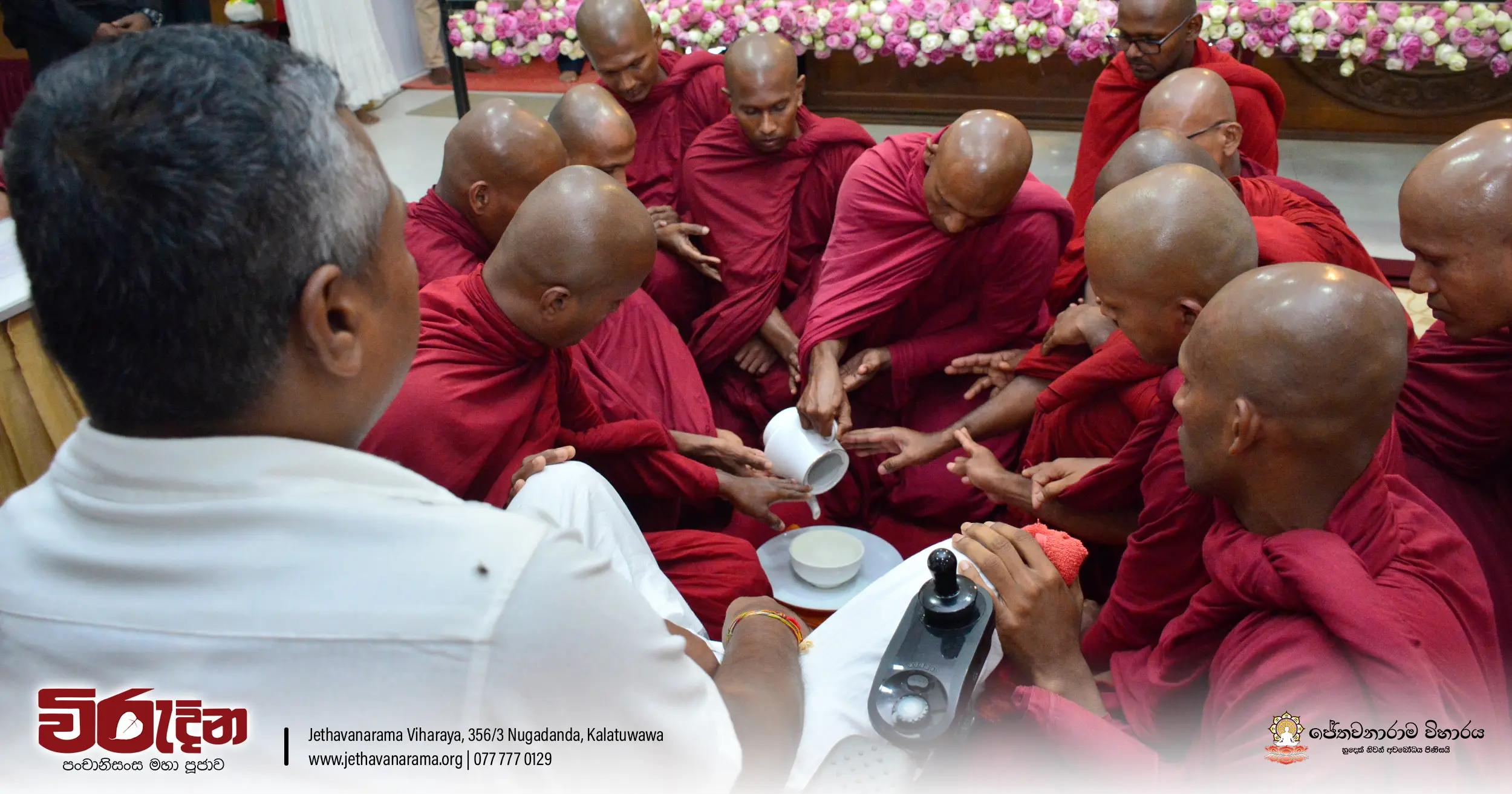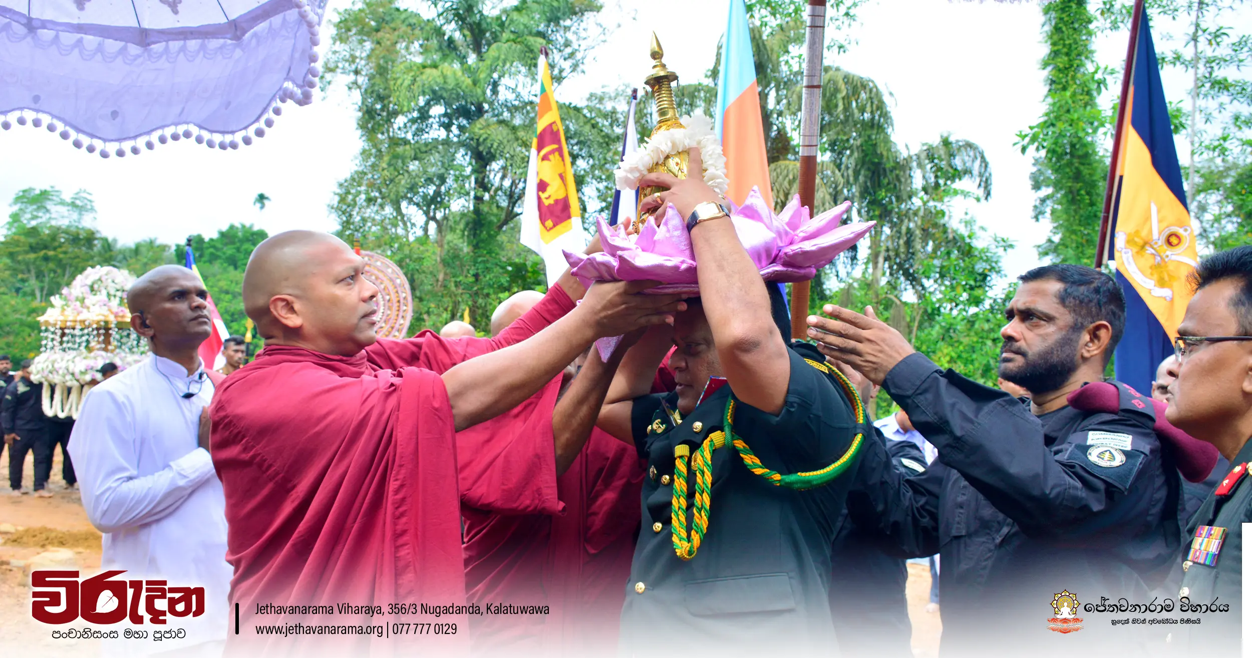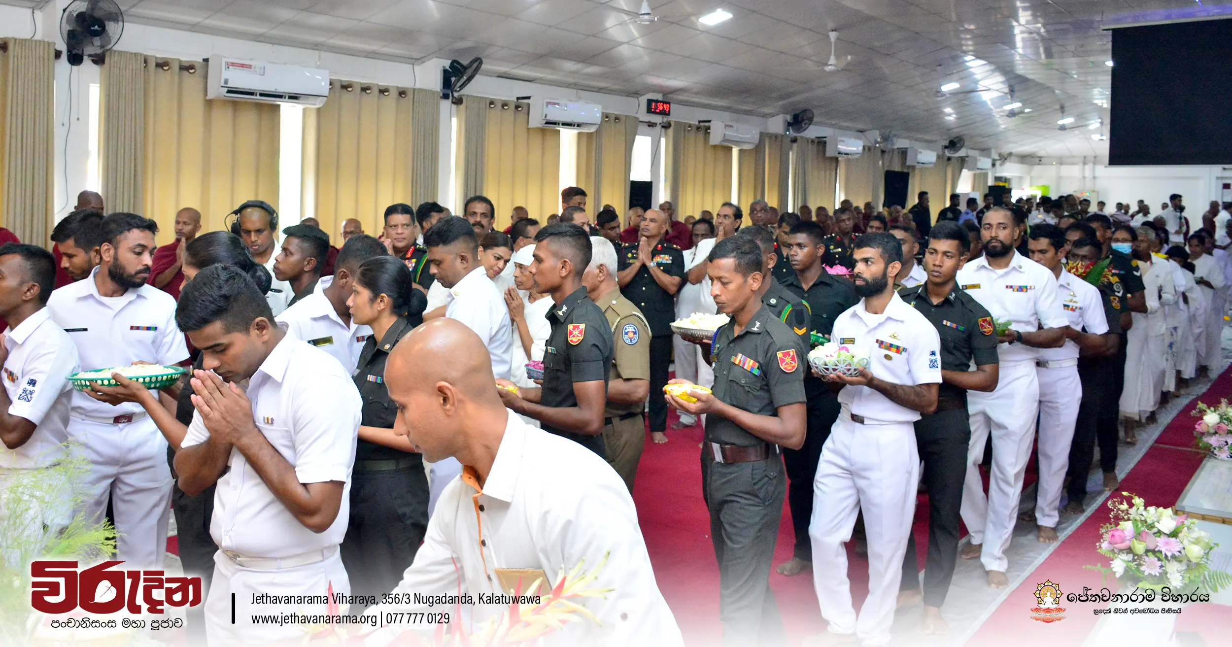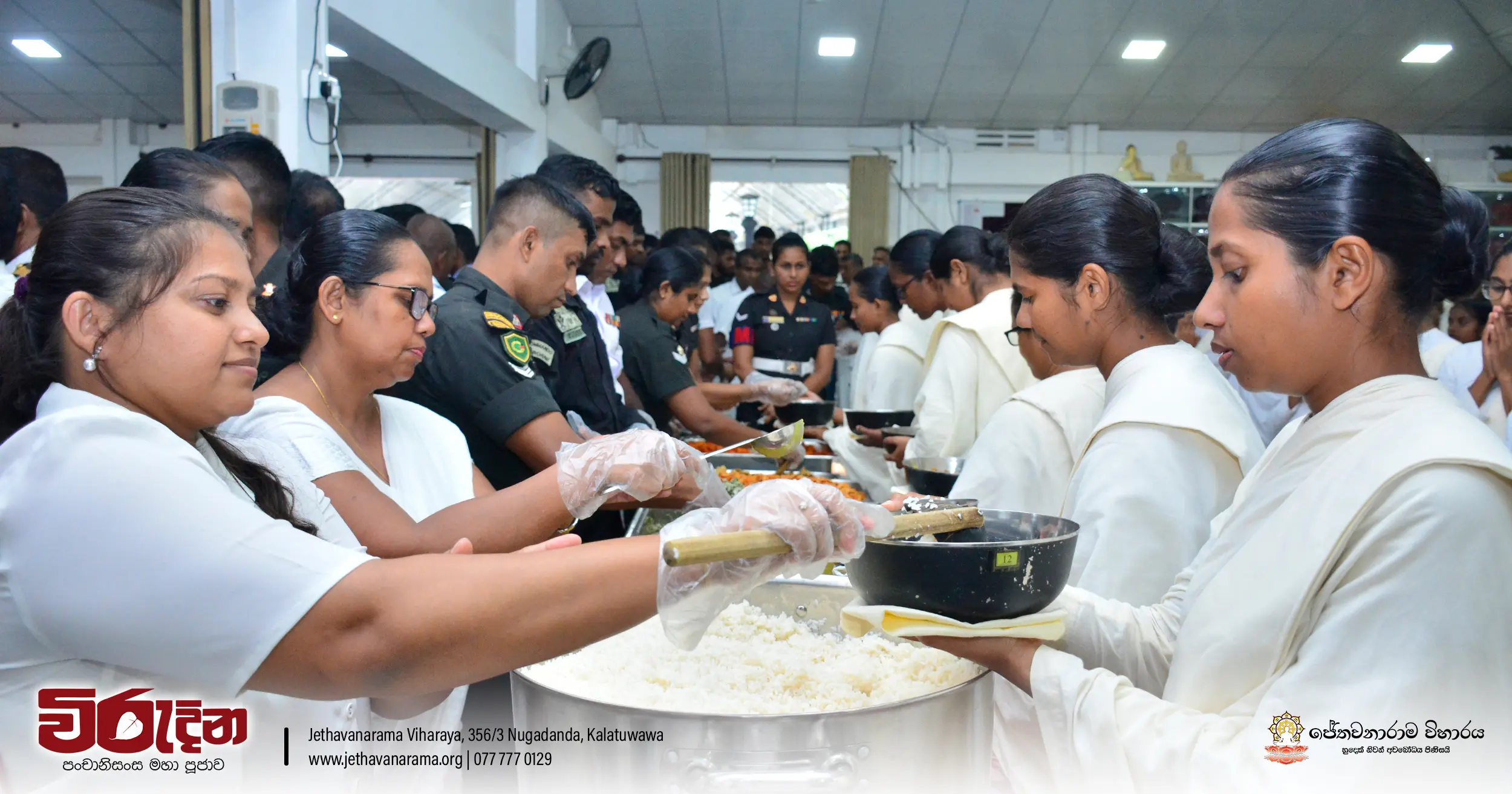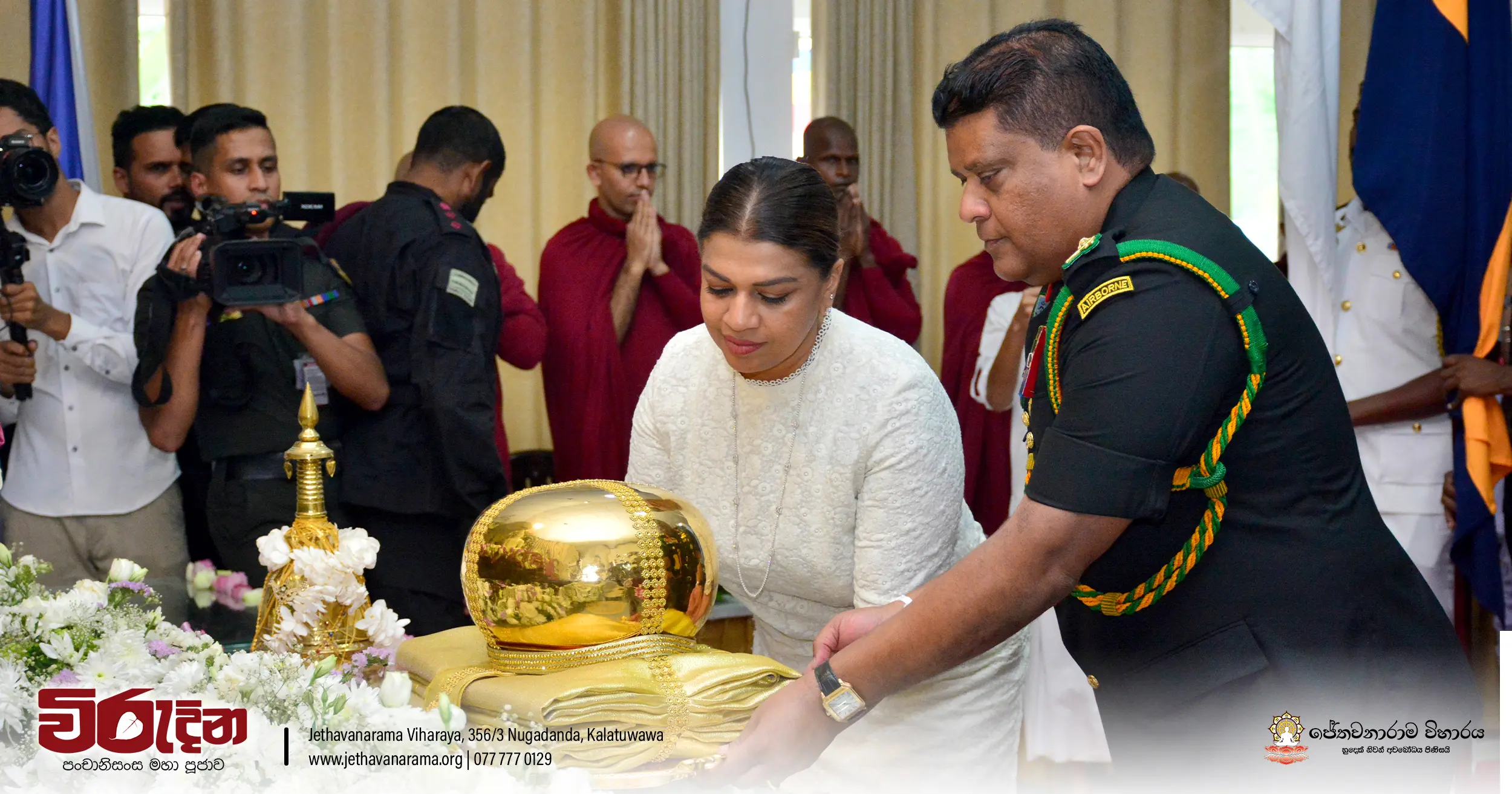 On the occasion of the 15th Victory Day, members of the Tri-forces and police personnel offered arms to 135 revered monks.They honored the memory of those who lost their lives during the war conflict and transferred merits.