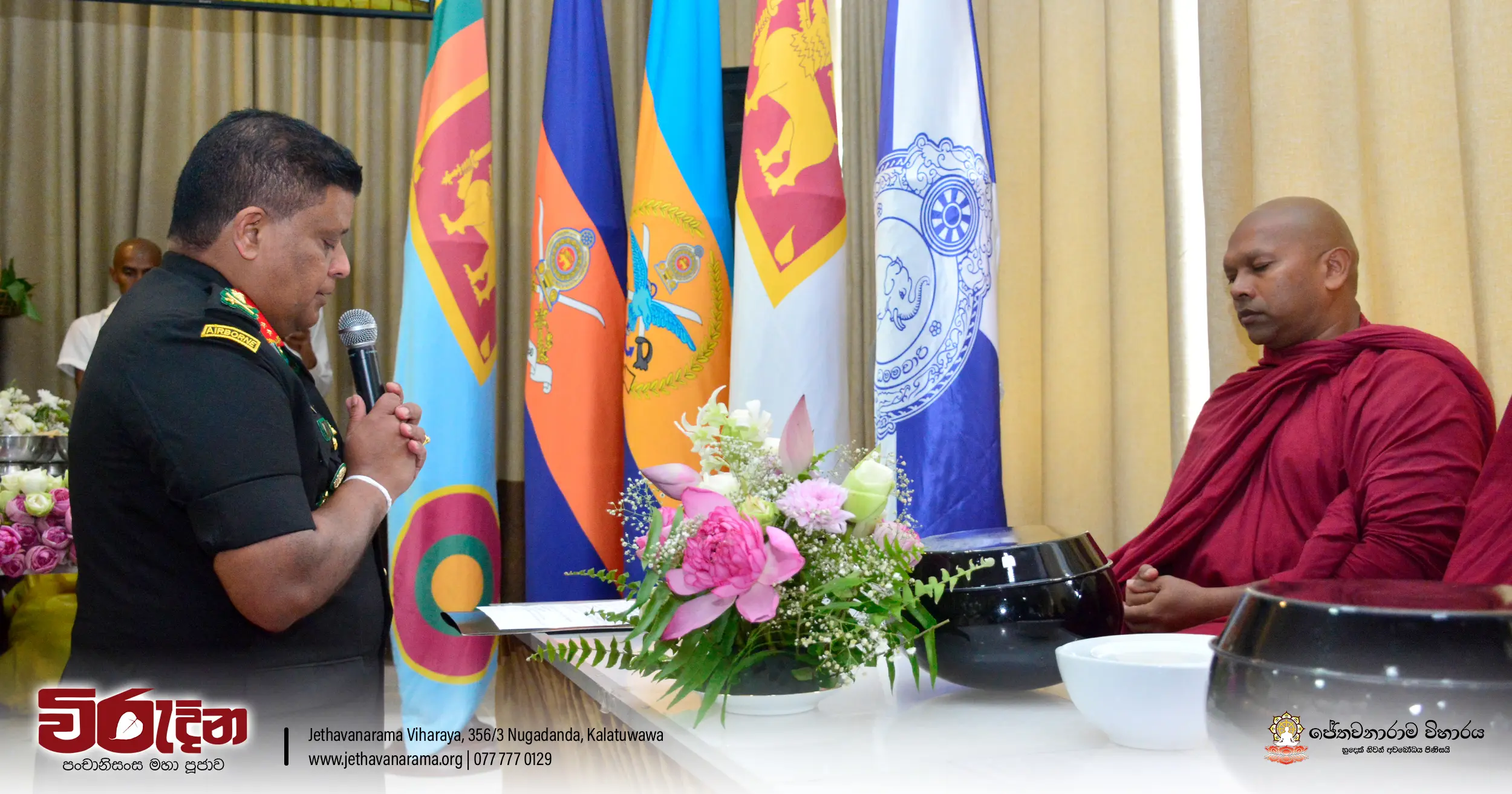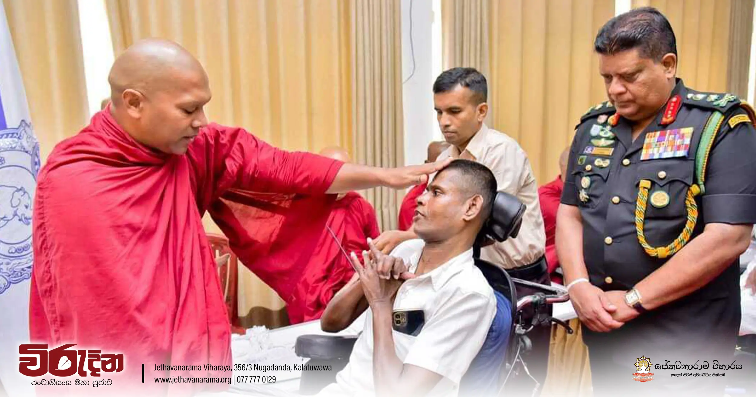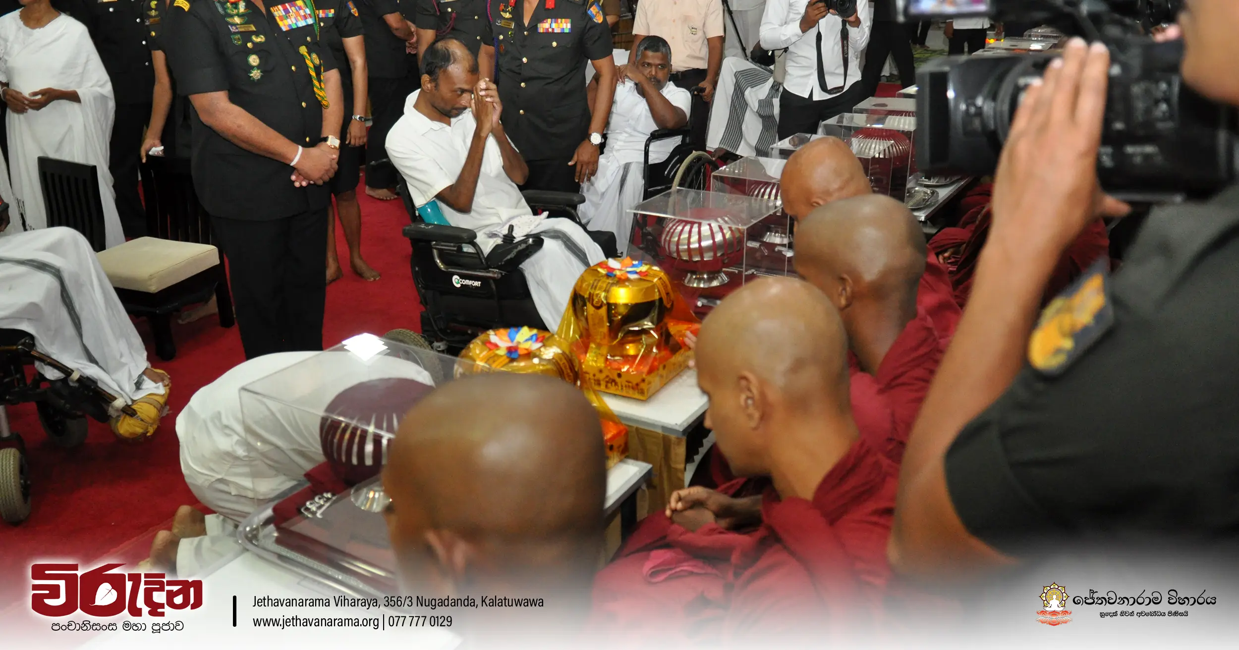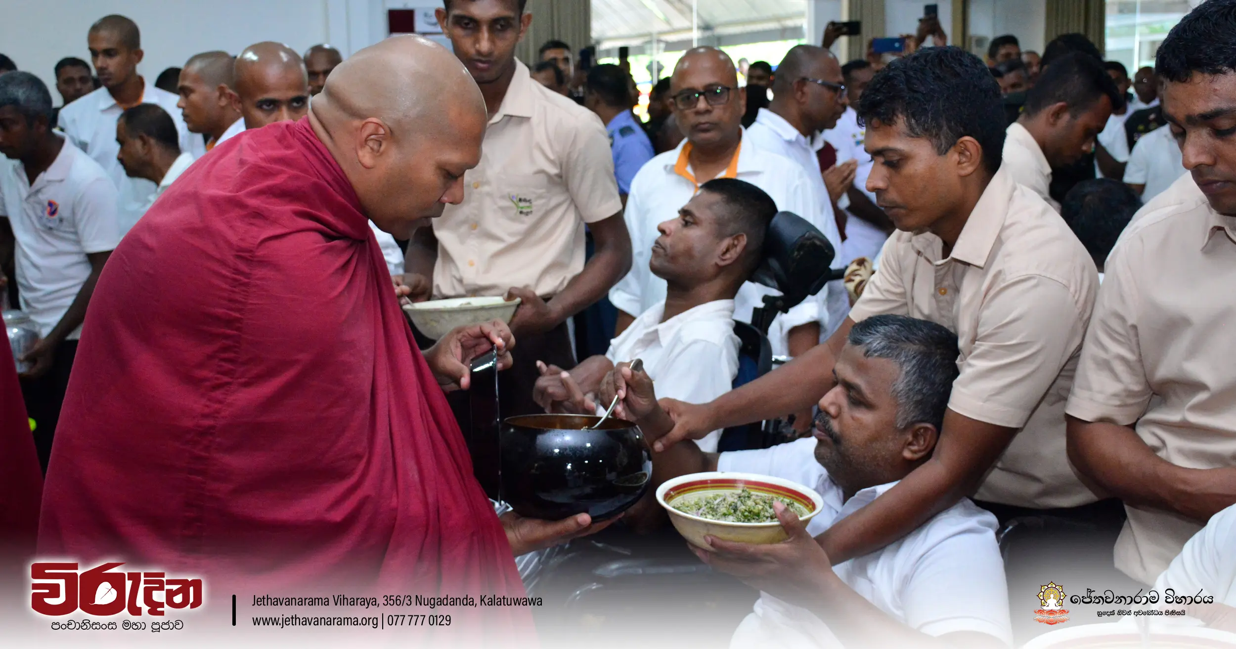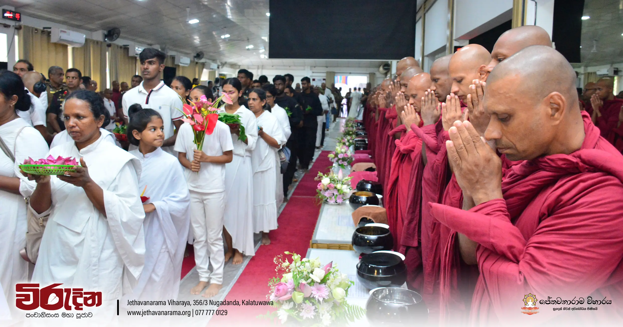 On the occasion of the 15th Victory Day, members of the Tri-forces and police personnel offered arms to 135 revered monks.They honored the memory of those who lost their lives during the war conflict and transferred merits.