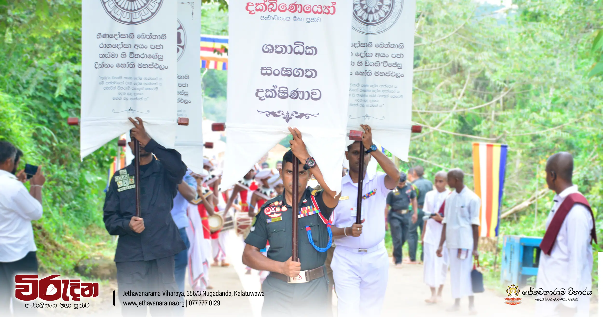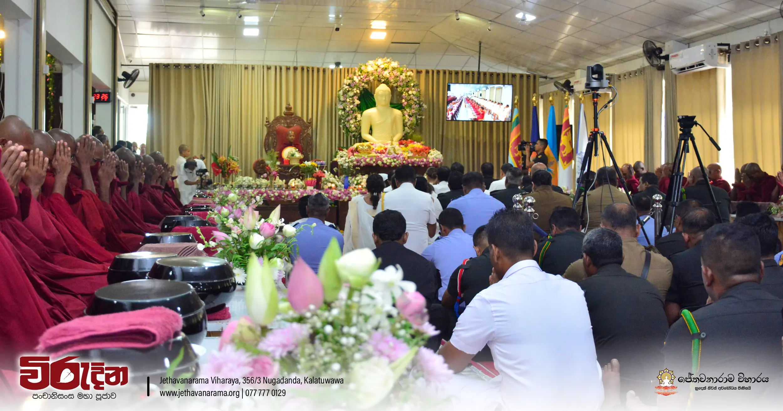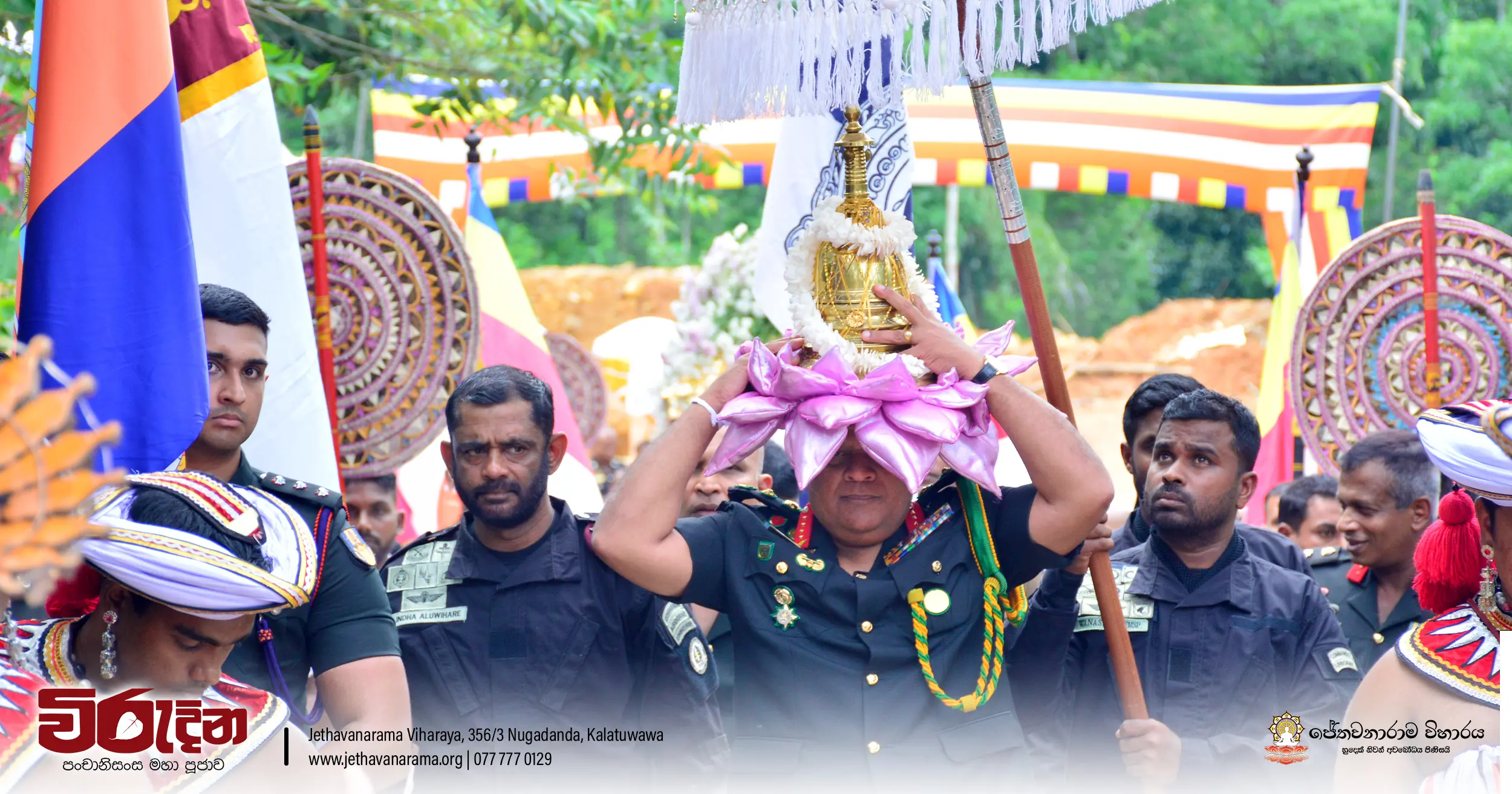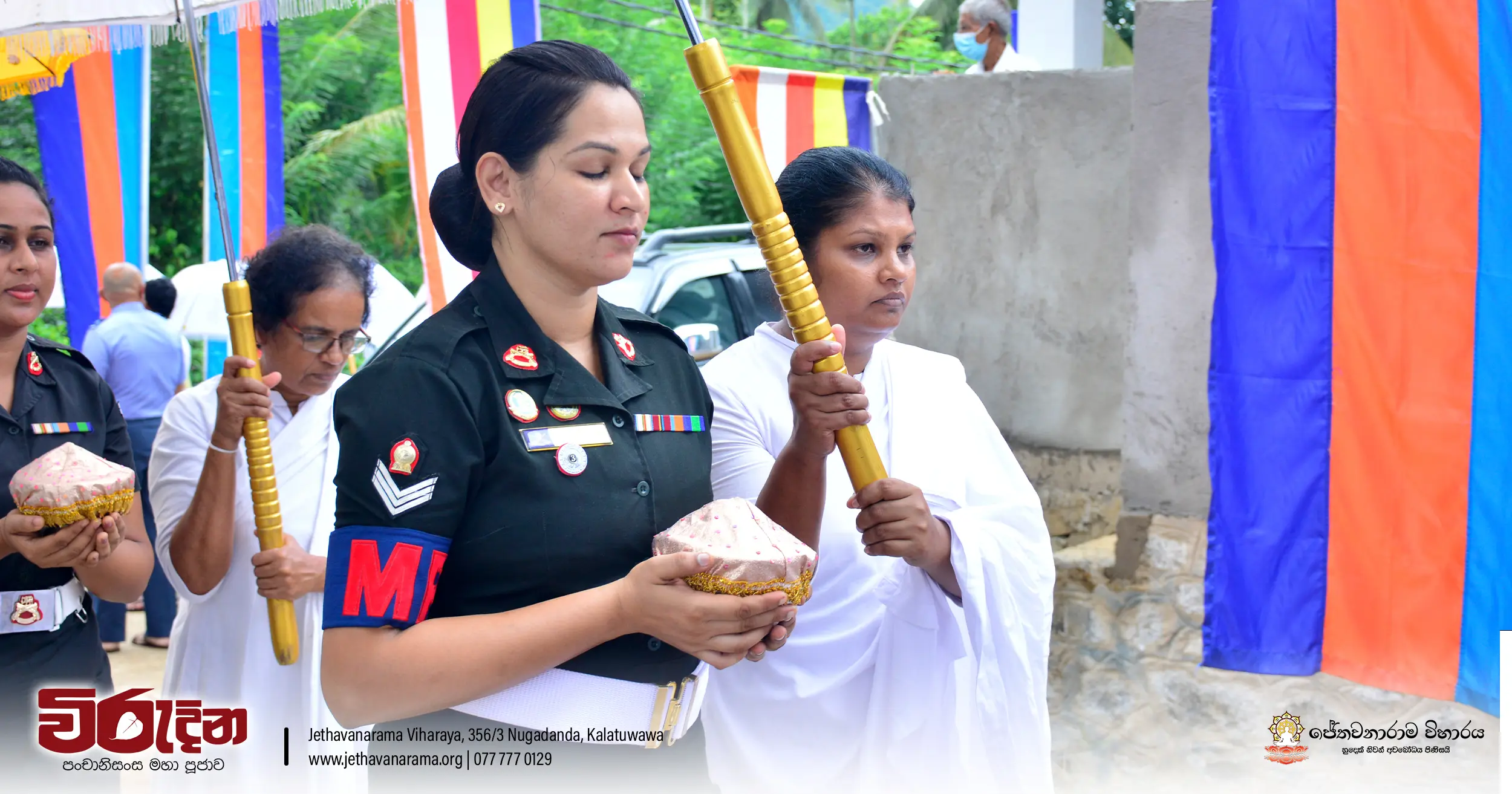 On the occasion of the 15th Victory Day, members of the Tri-forces and police personnel offered arms to 135 revered monks.They honored the memory of those who lost their lives during the war conflict and transferred merits.