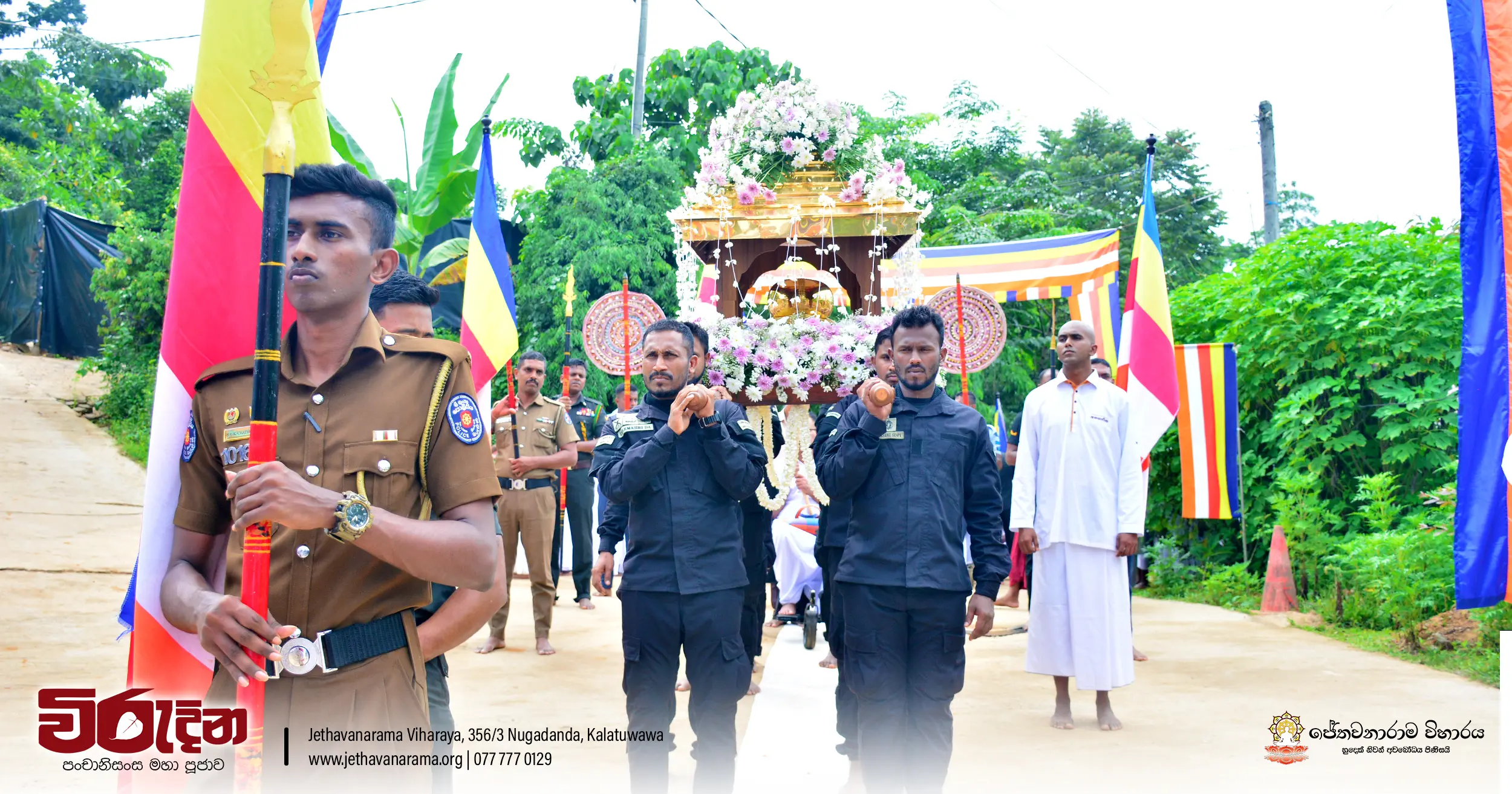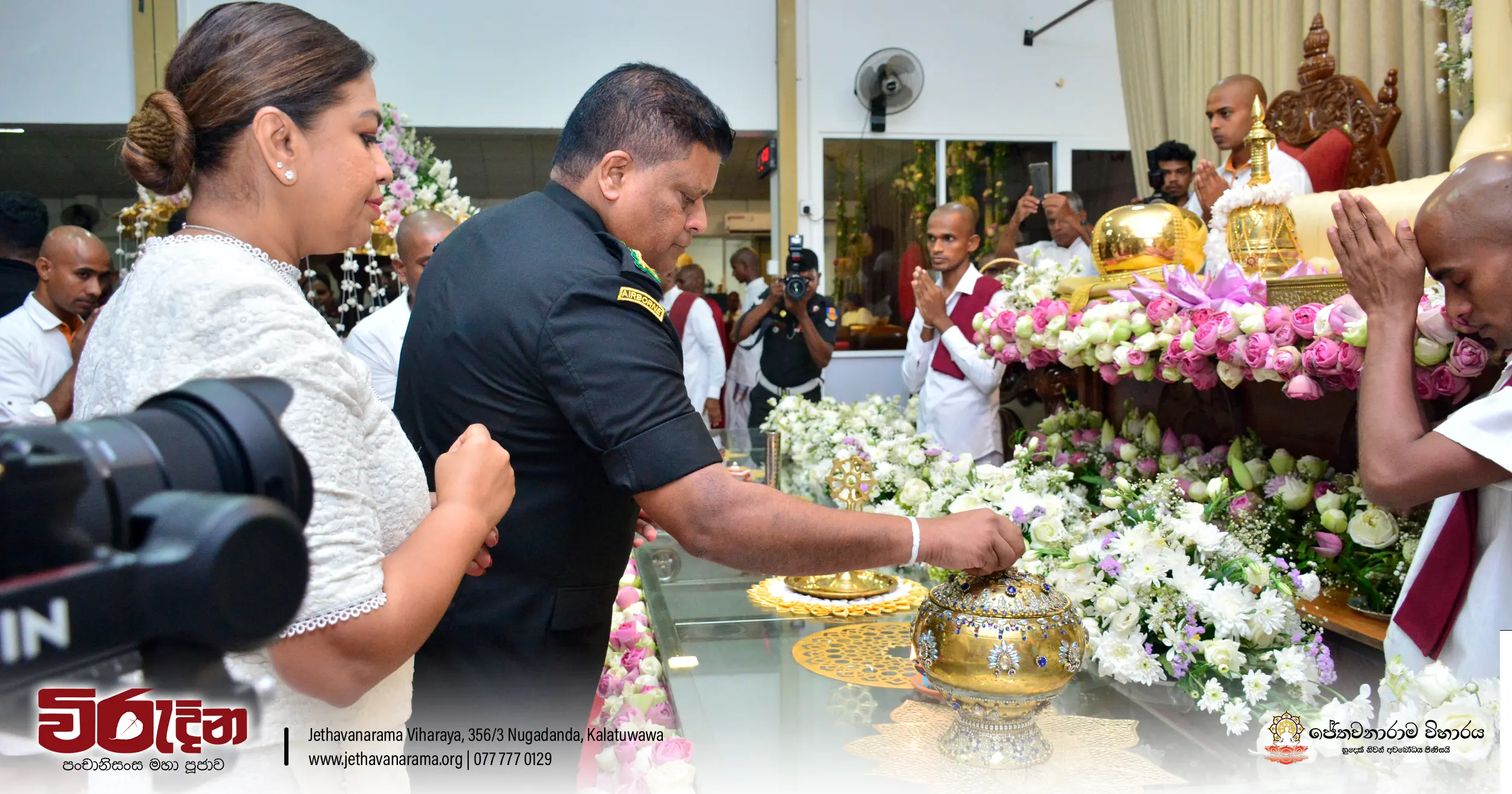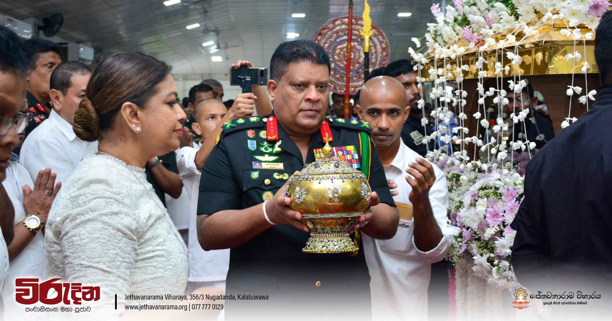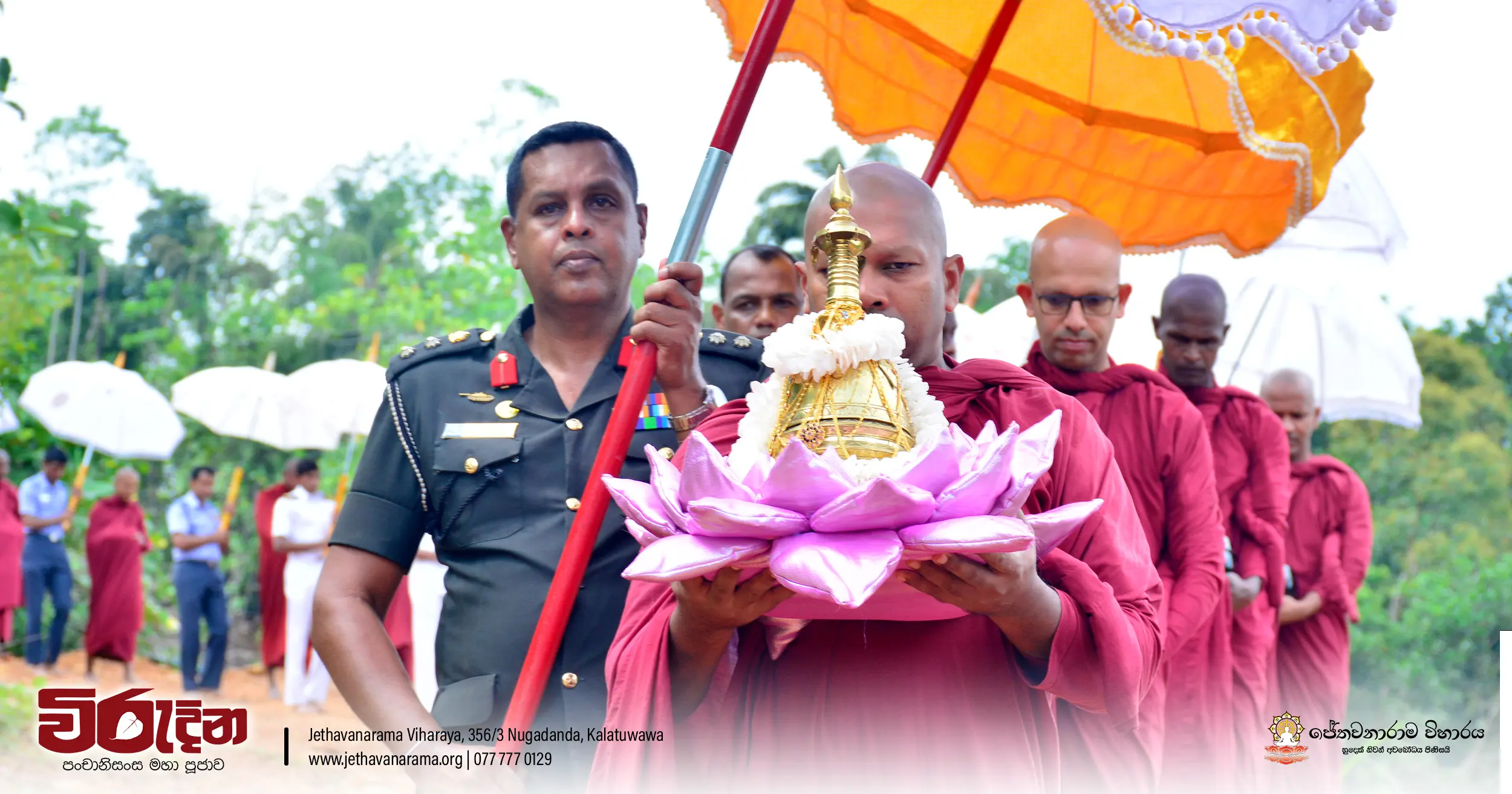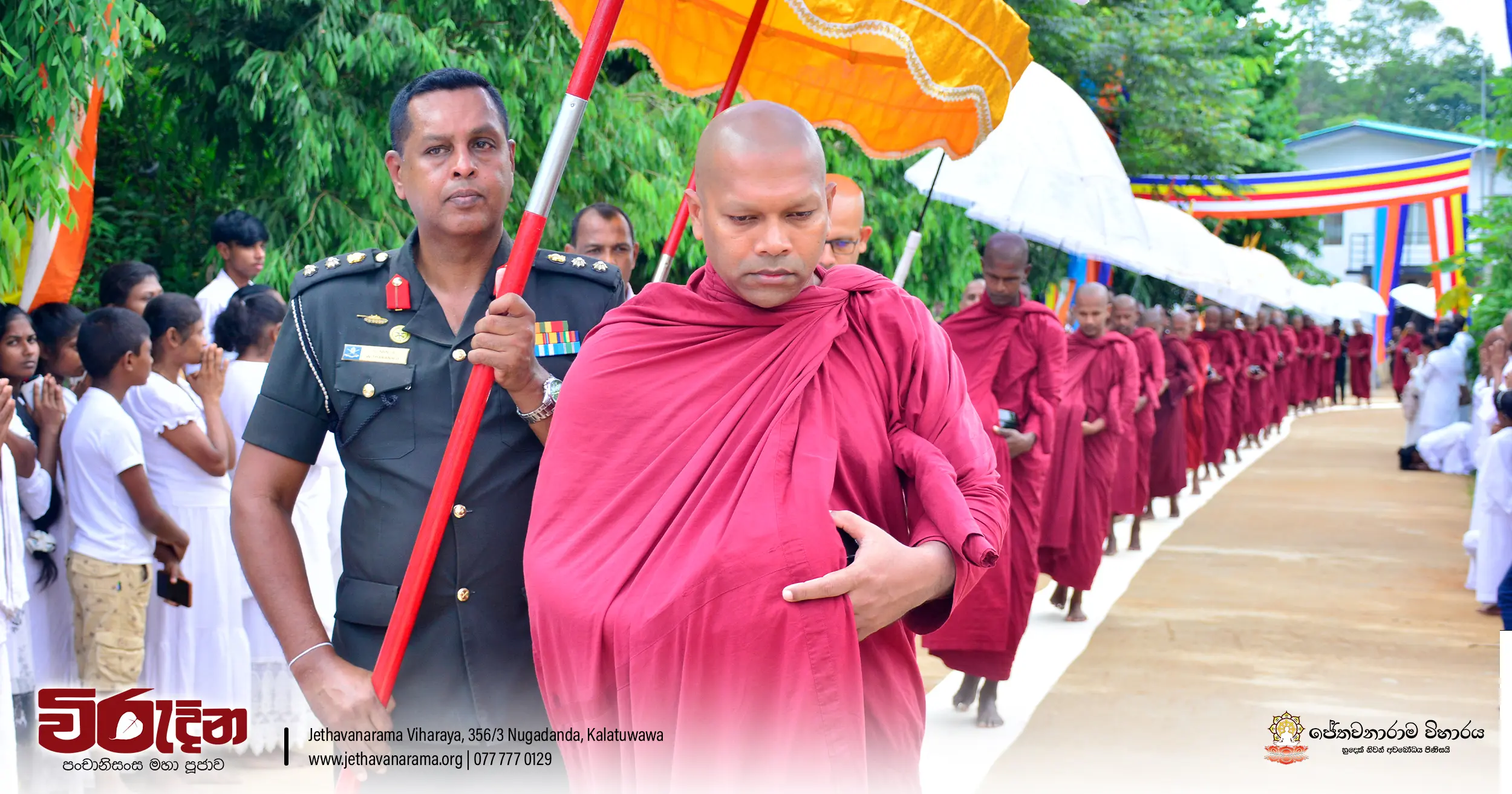 On the occasion of the 15th Victory Day, members of the Tri-forces and police personnel offered arms to 135 revered monks.They honored the memory of those who lost their lives during the war conflict and transferred merits.